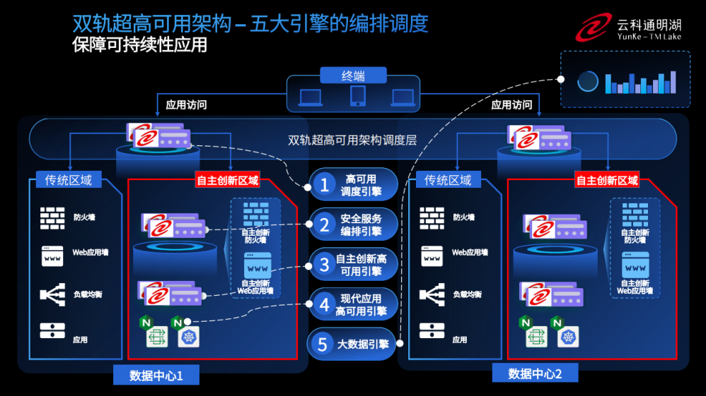 为实现双轨超高可用架构信创区和非信创区的跨域协同,实现信创区域和非信创区域的平滑过渡,连连国际顺利获得五大引擎实现多层次的应用可持续性。